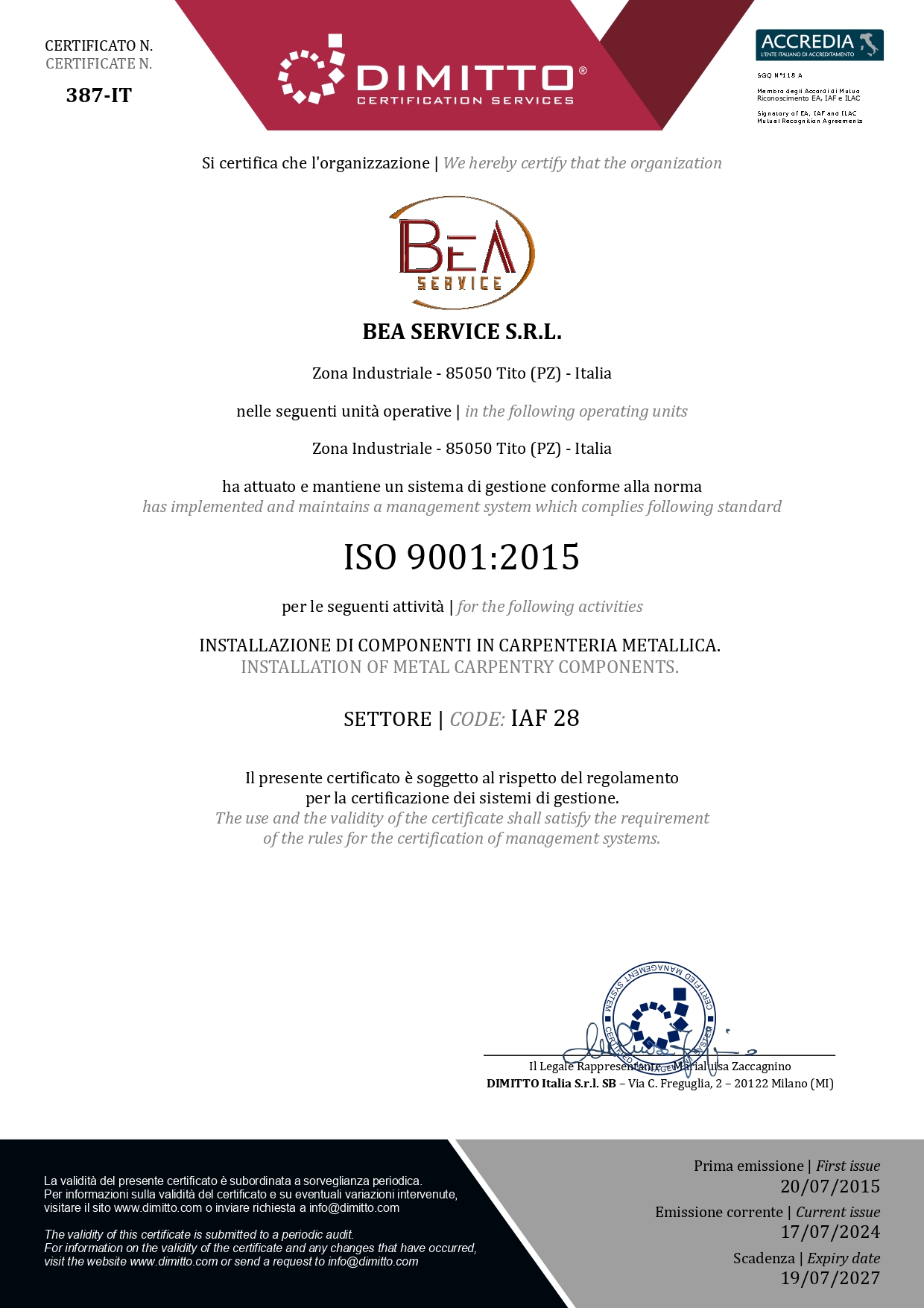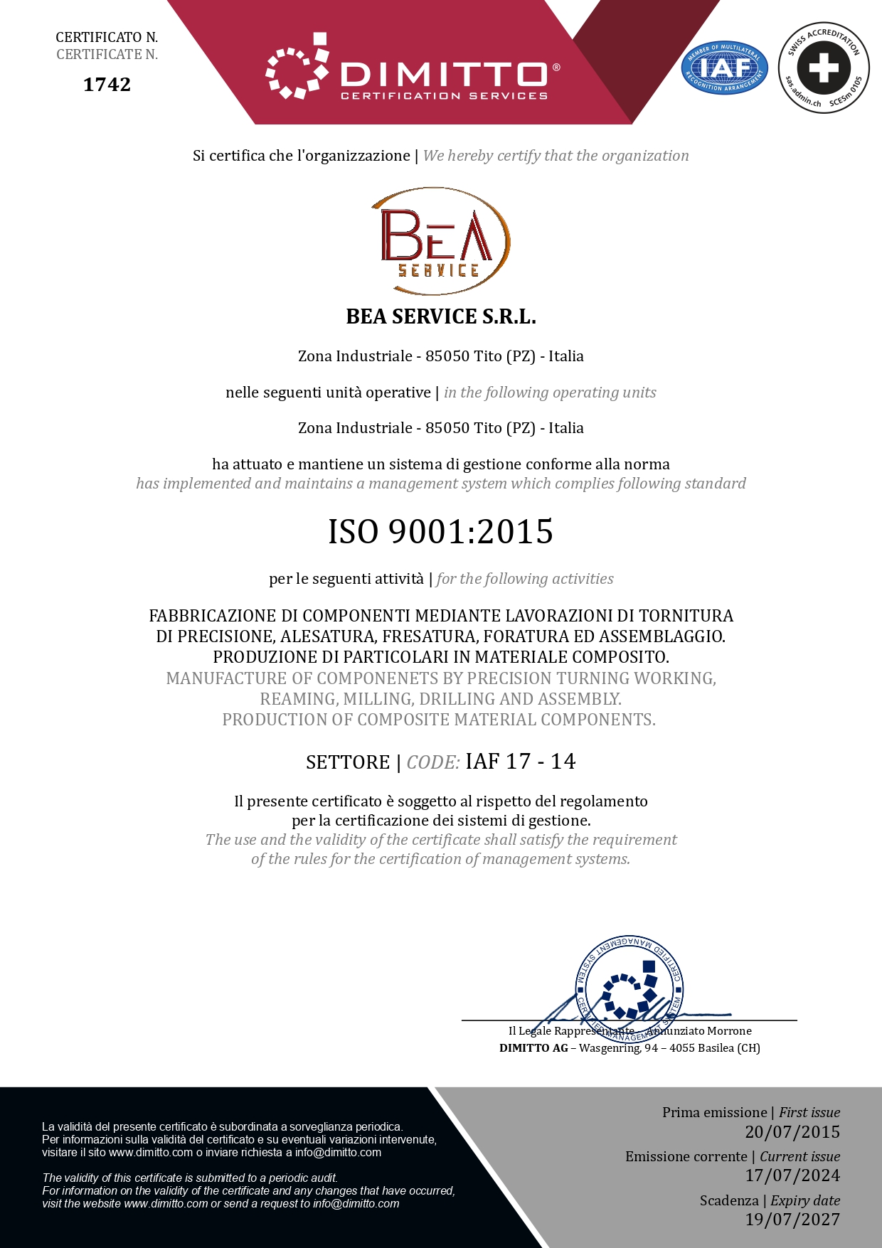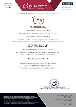 L’azienda, consapevole dell’importanza e della necessità di avvalersi di un Sistema di Gestione per la Qualità riconosciuto in ambito internazionale, al fine di garantire la qualità dei prodotti e dei servizi erogati e raggiungere la soddisfazione dei propri Clienti, ha ritenuto opportuno conformare il proprio Sistema di Gestione per la Qualità al modello proposto dalla UNI EN ISO 9001:2000.